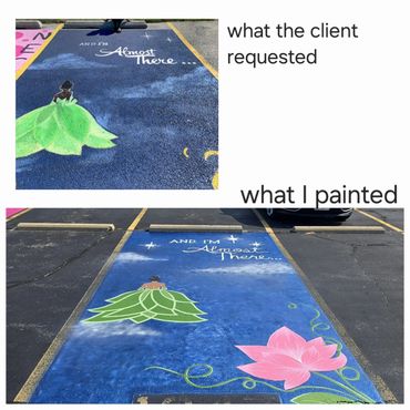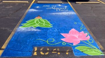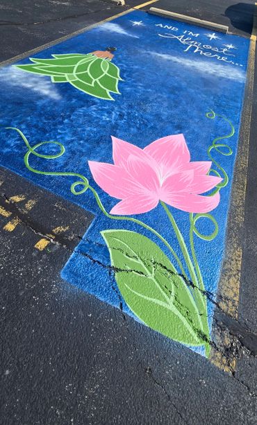 Green and purple paint with white-painted wainscoting. Flowers are vinyl decals.